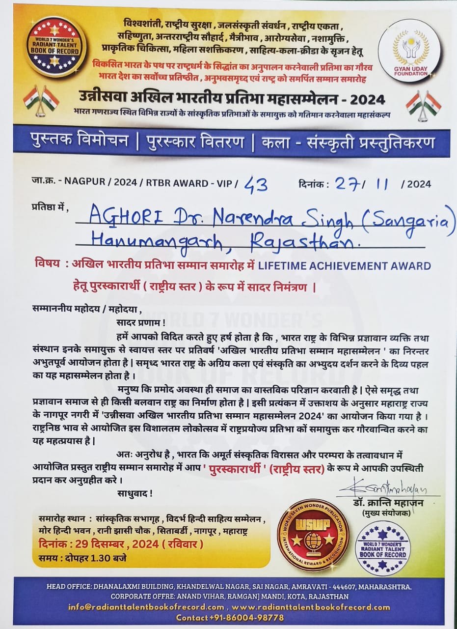 Copyright © Aghori Dr.Narender Muni Ji, +91-8561922117 . All Rights Reserved 2025-26. Design & Developed By:-  Web1Tech Team
